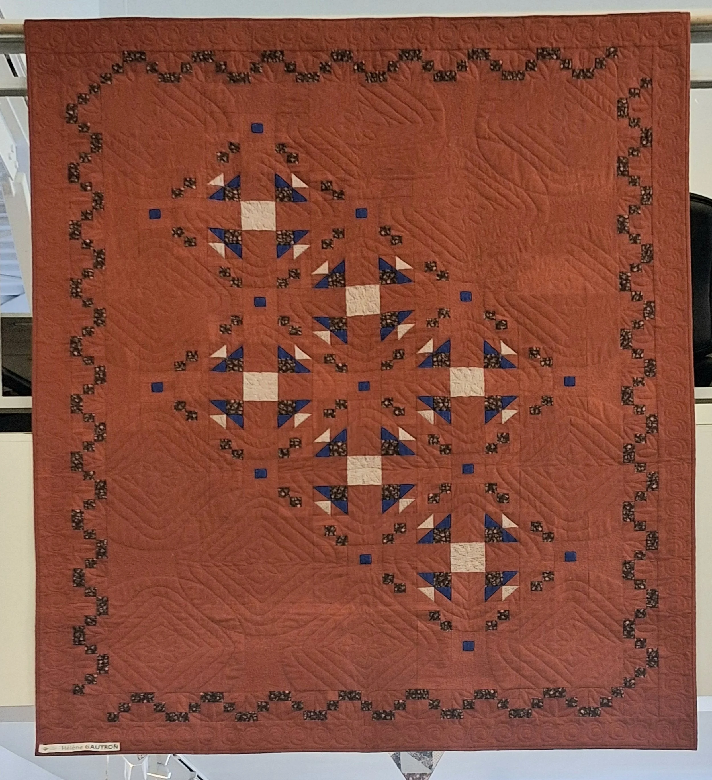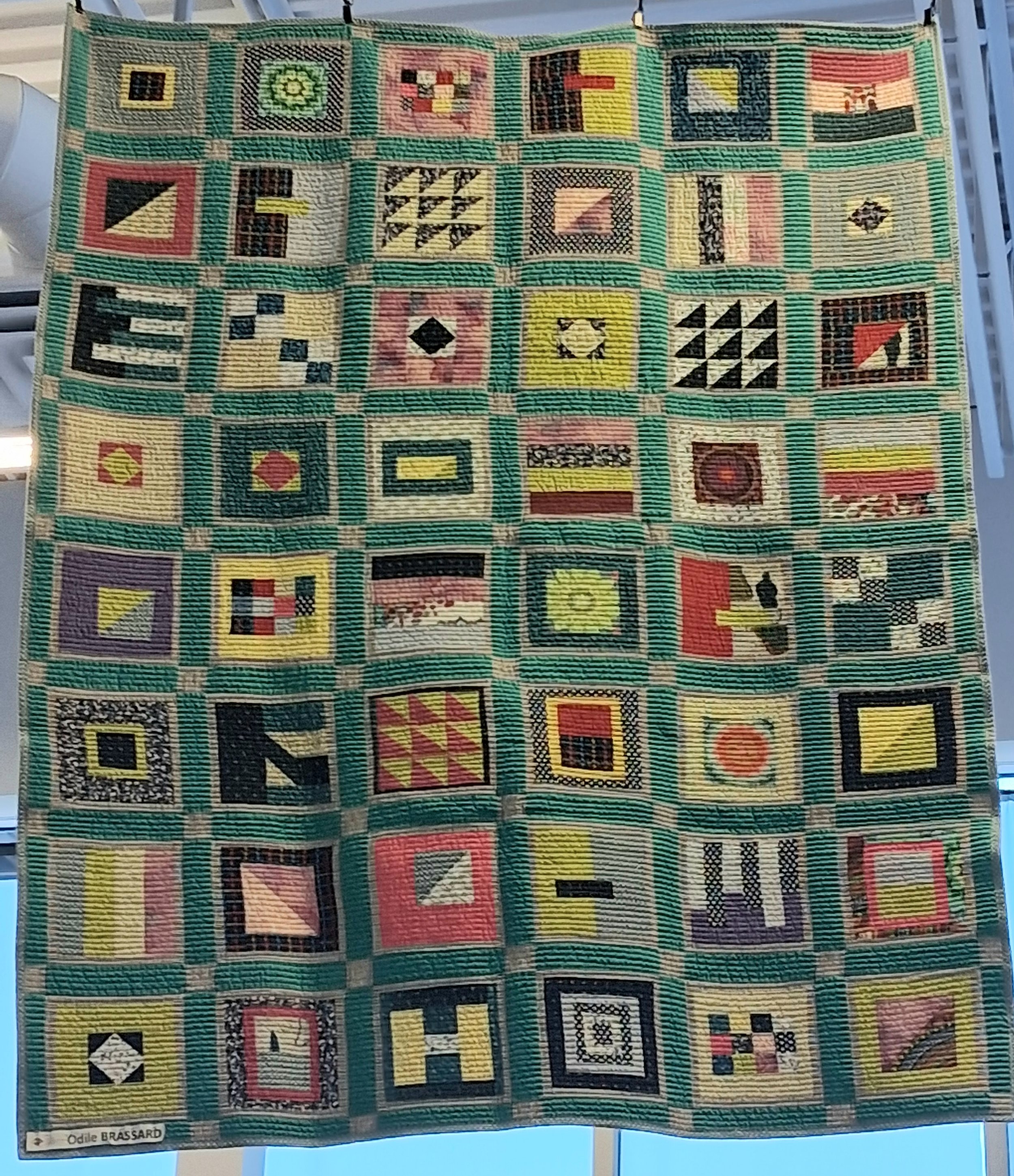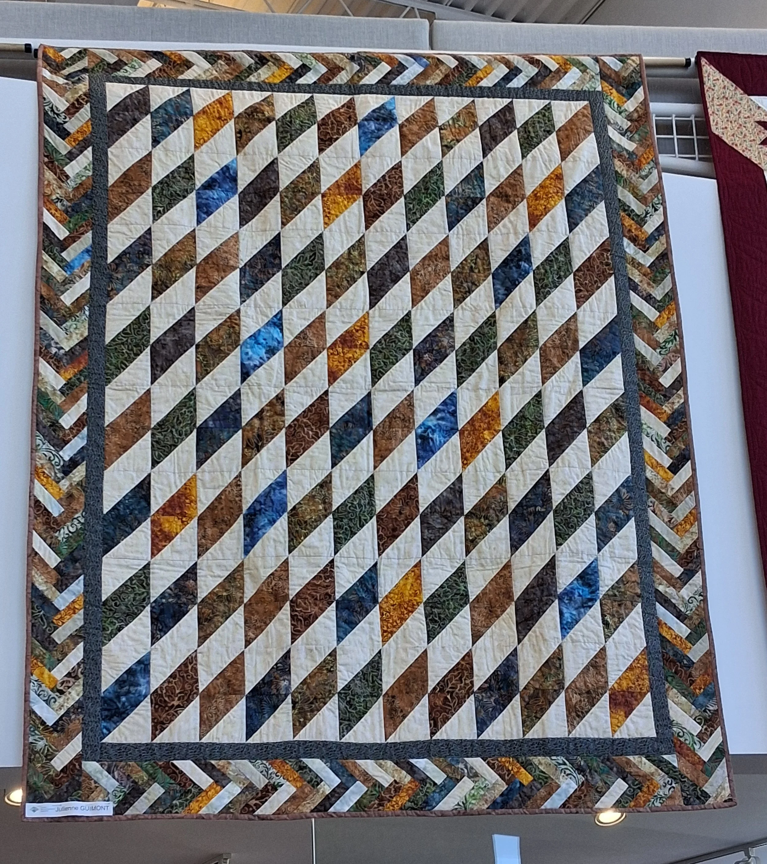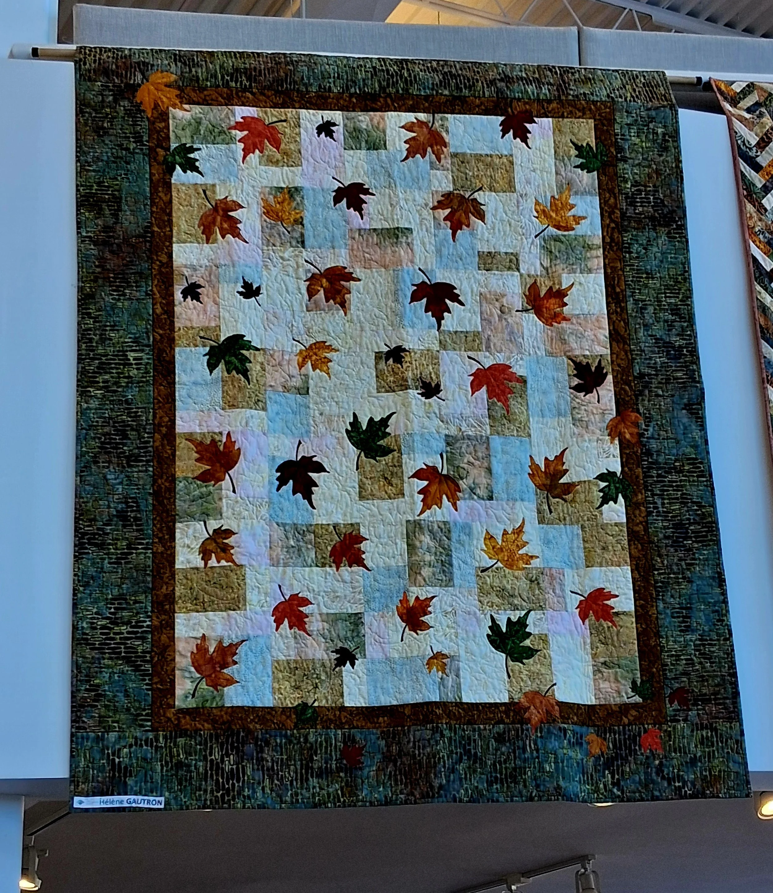 Trois membres de la Guilde ont proposé des courtepointes pour cette nouvelle exposition : Diane Morrissette, Hélène Gautron et Marie-Thérèse Duquette. Nous sommes en mesure de voir l’auteure de chacune des oeuvres sur les photos.