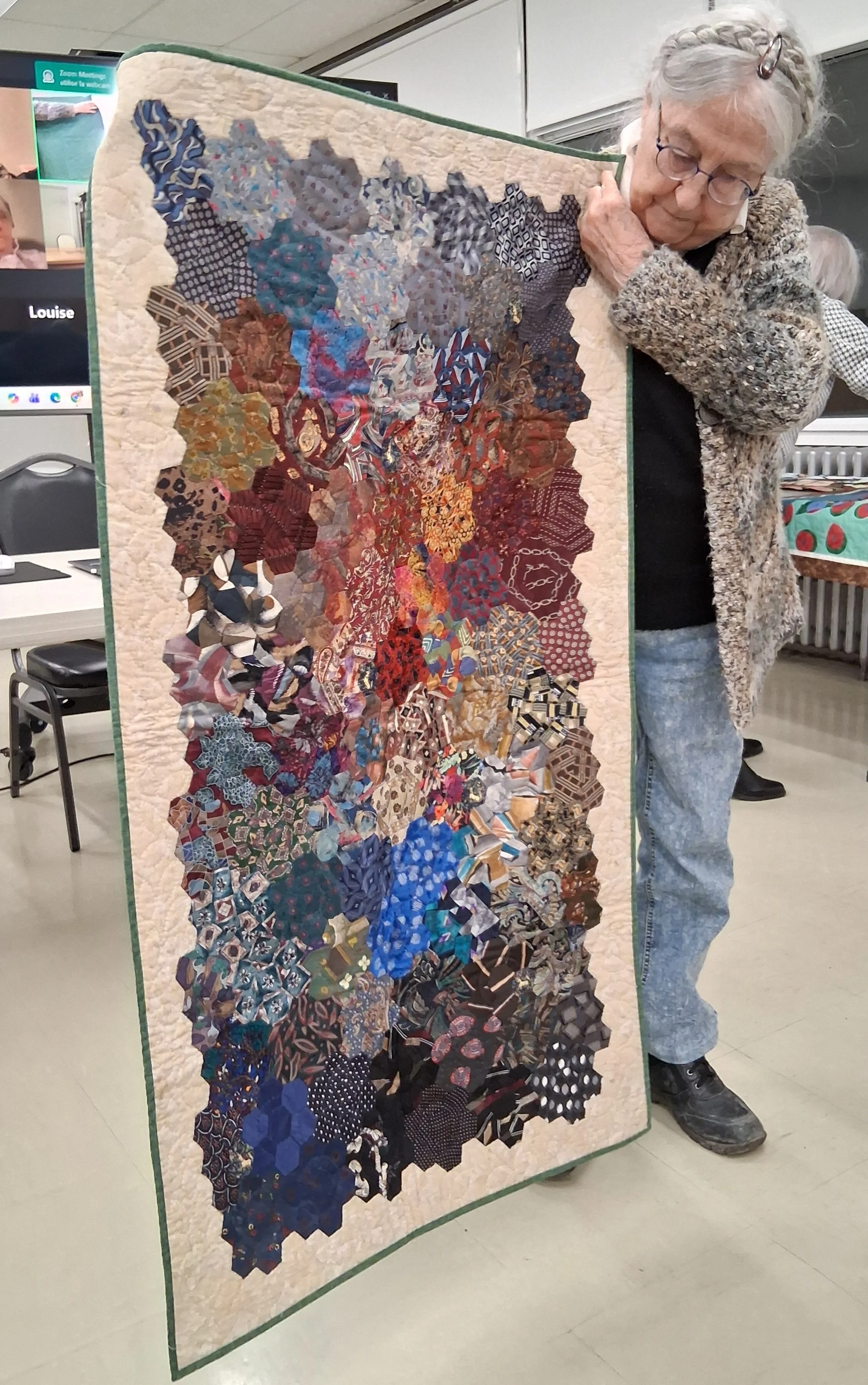 Plusieurs beaux projets présentés lors de cette rencontre. Ce qui est vraiment intéressant c’est d’entendre les défis auxquels chacune des courtepointières a été confrontée lors de la confection de ces oeuvres ou l’histoire des tissus, de l’intérêt, de la vie qui les attend. Merci à chacune de partager votre passion et vos magnifiques créations.